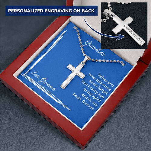 Gift for Grandson Cross Necklace, Grandson Birthday, Grandson Gift, From Gramma, Personalized Cross