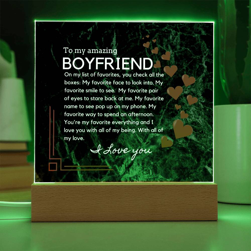 Embrace the opportunity to honor your beloved boyfriend with this extraordinary acrylic plaque. Our dedication to excellence guarantees a product that will be treasured for years to come. Celebrate the love that binds you together and make a profound statement of devotion with this captivating piece of art.